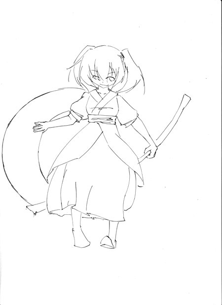 前回のこまっちゃんあたりから練習してる、違う画風というか等身というか体曲線というか。